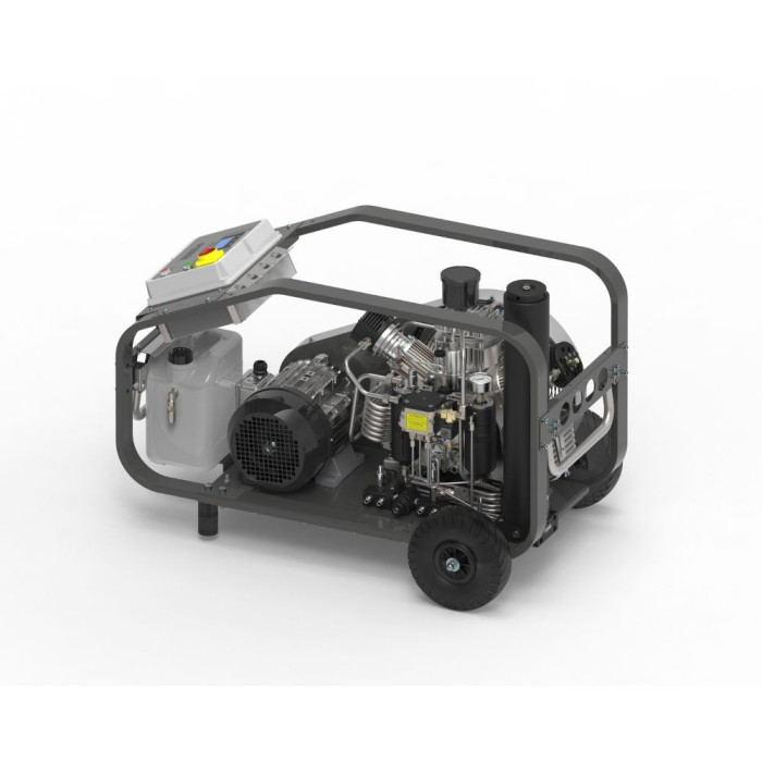Medium-performance high-pressure compressor NARDI PACIFIC M, for fast filling of large volumes of pressure vessels for firefighters and divers. With a filling flow rate of 160 to 350 liters/min and air quality according to DIN EN 12021.