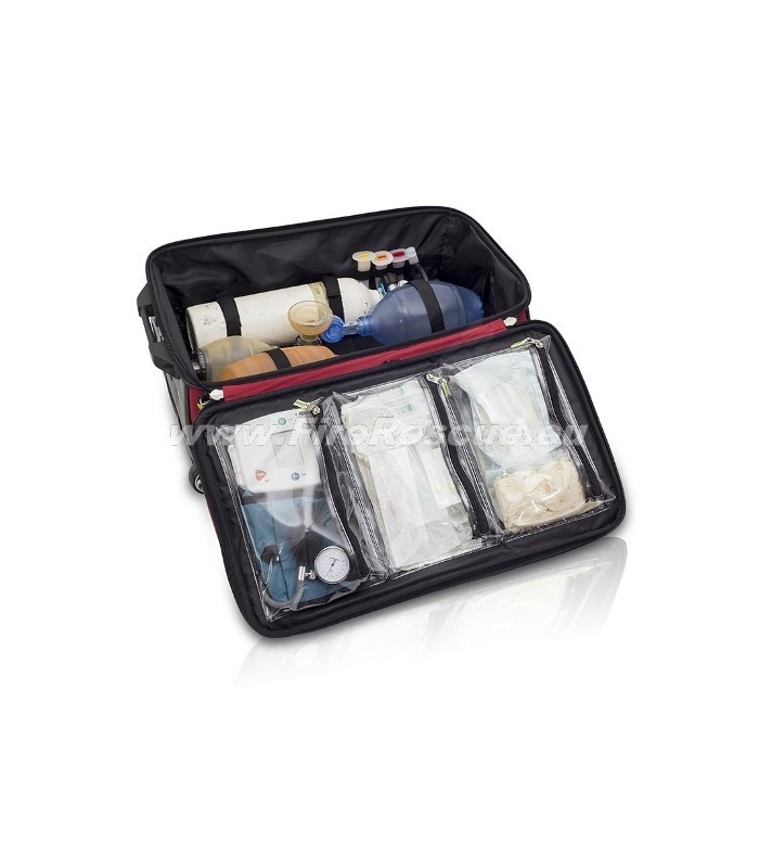 This large capacity emergency bag with a built-in trolley allows a comfortable transport and quick access to the necessary equipment for the emergency professionals.