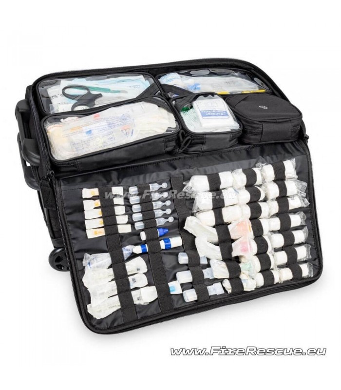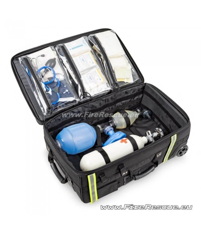 This large capacity emergency bag with a built-in trolley allows a comfortable transport and quick access to the necessary equipment for the emergency professionals.