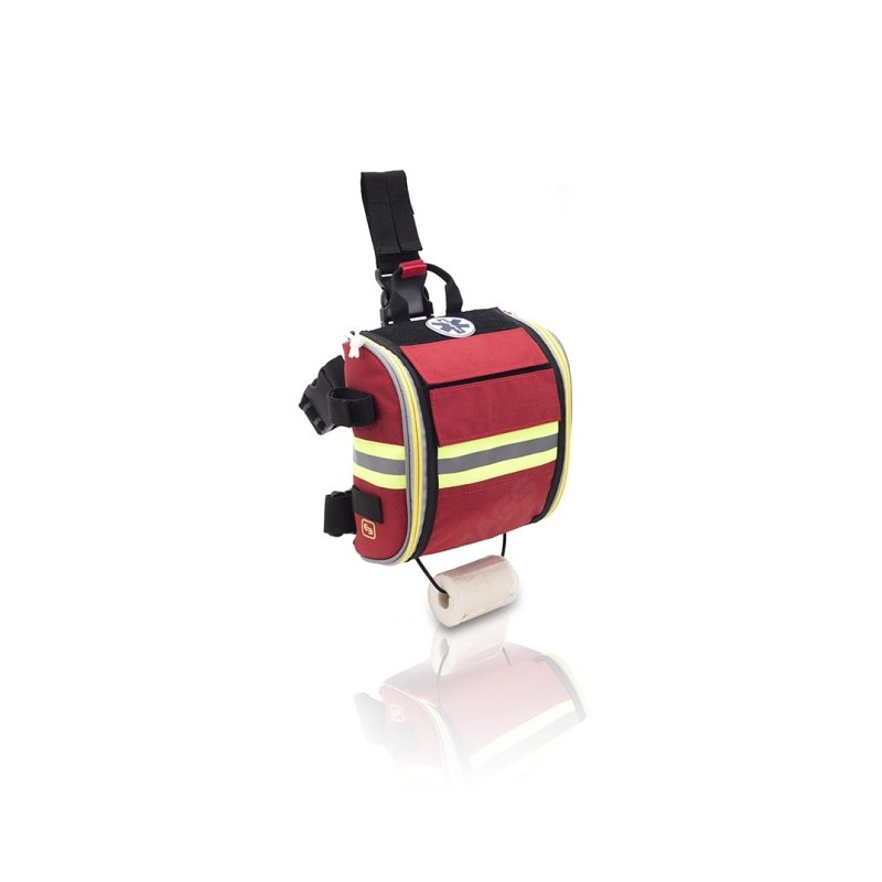 Paramedic’s first aid kit. Its big size and layout allows the transport and organization of self-care & emergency material. Its double fastening position (waist/leg) make this bag easy to carry, moreover its position can be regulated, and the anti-slippery bands stops the bag moving on the leg.
