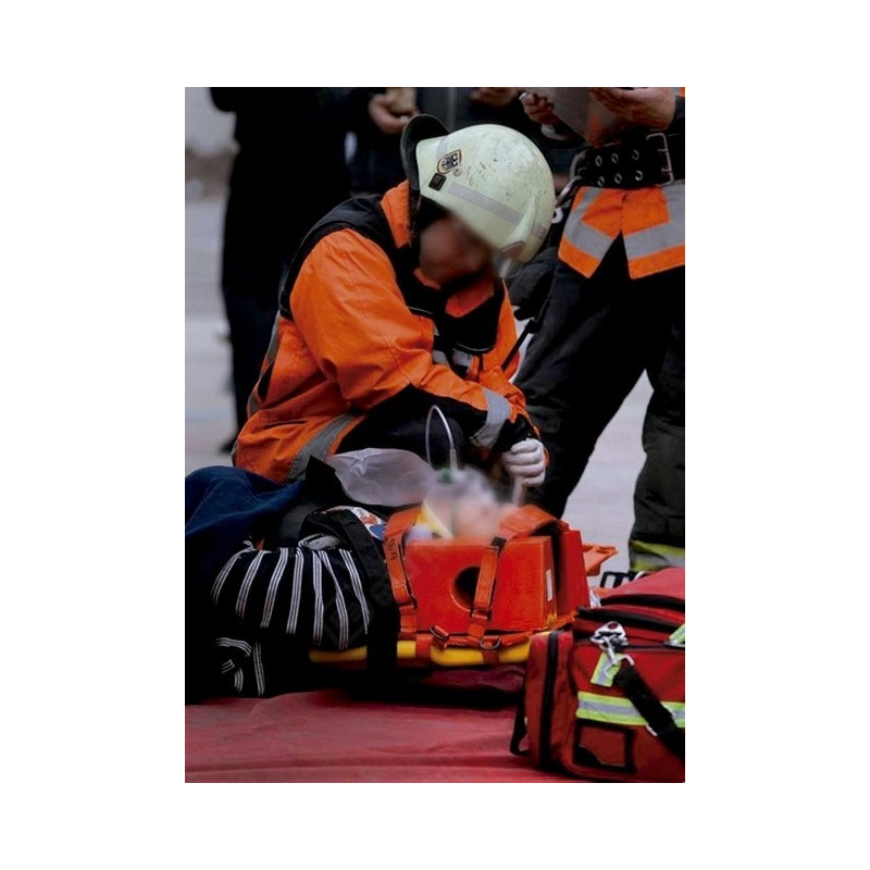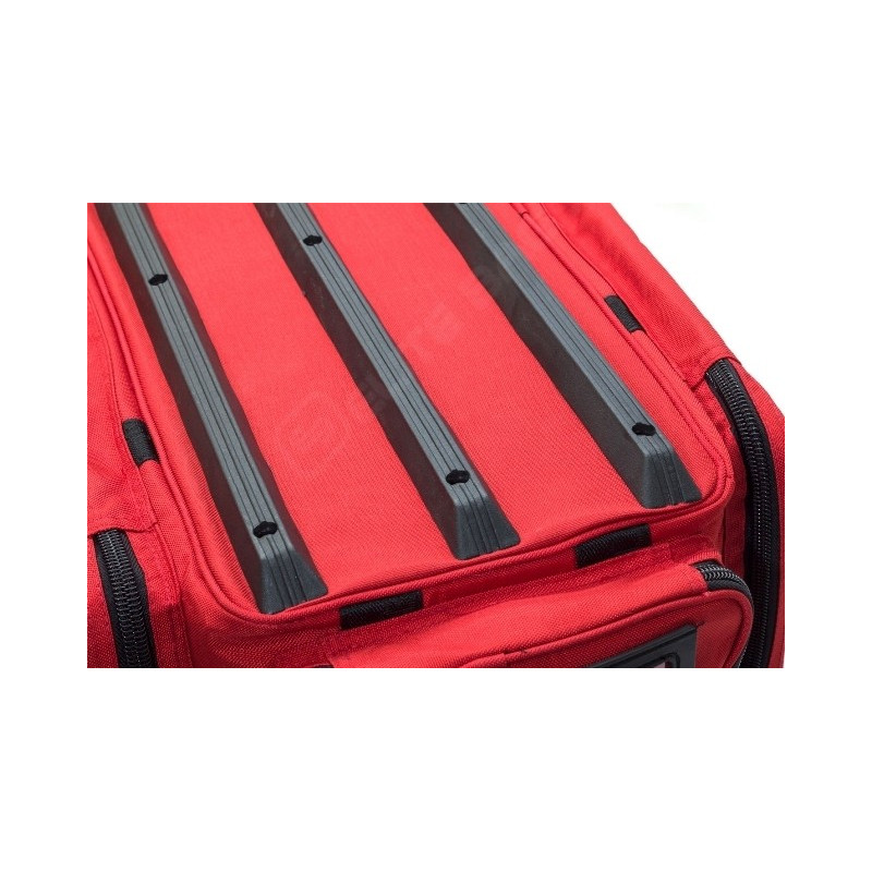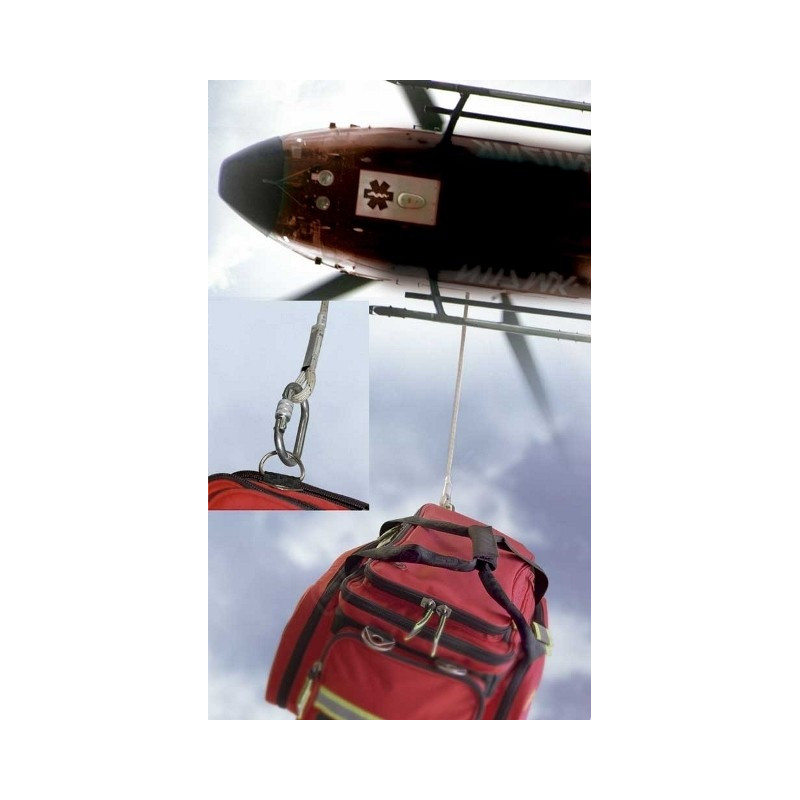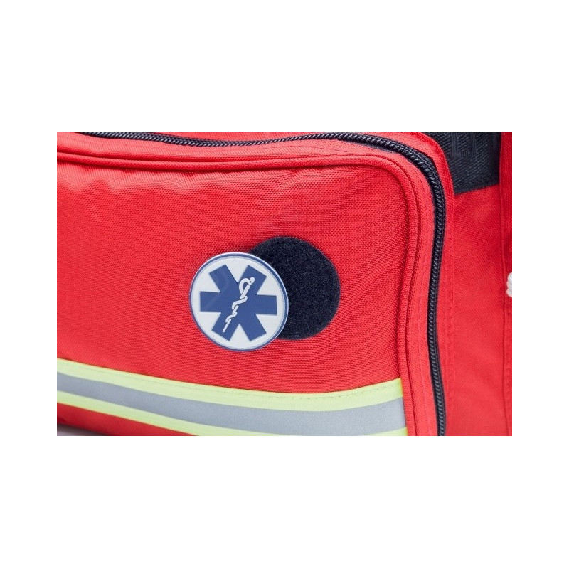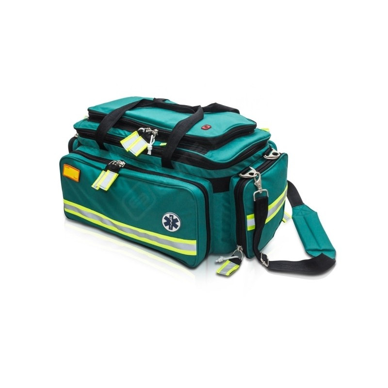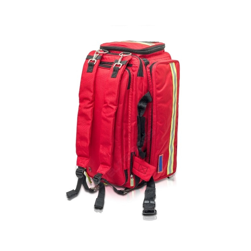Its honeycomb interior structure allows the user to quickly visualize and get the required material, including oxygen bottle and bag valve mask, to properly intervene in a situation where the patient is critical. It has several detachable compartments in different colours.