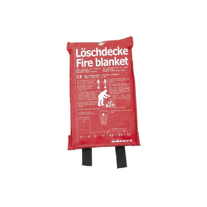 Genesis fires in the home, in the workshop, on campsites, etc. can be stifled in seconds. Thanks to an eyelet, the practical storage bag can simply be hung on the wall. In case of emergency simply pull the fire blanket over the two straps. The fire blanket unfolds automatically and can be placed immediately above the fire.