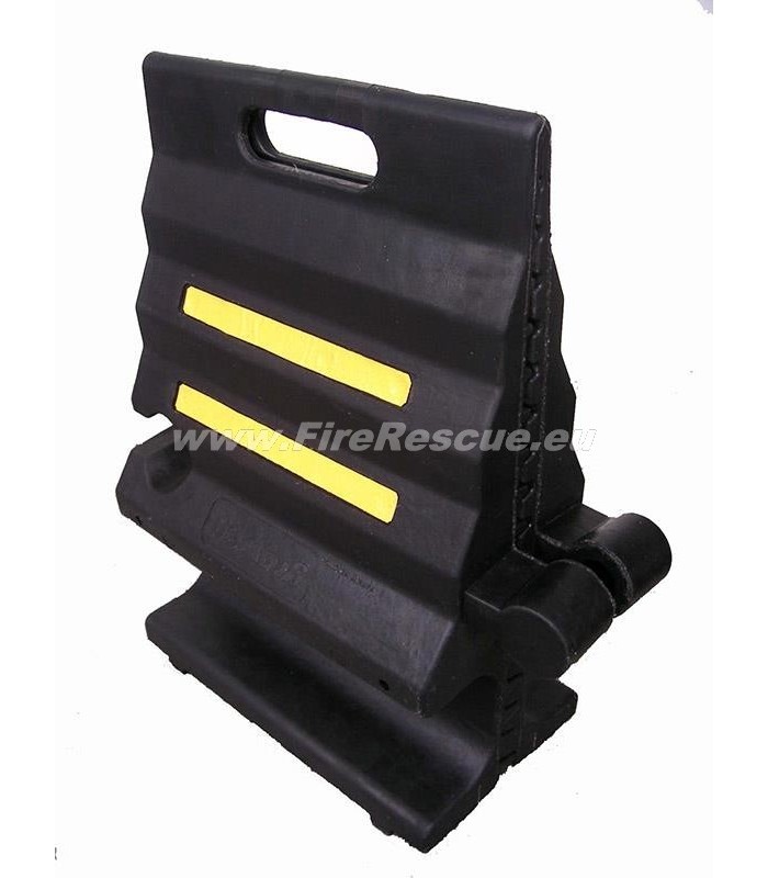 The hose bridge Crocodile presents itself as extremely robust and resistant. The standard knobs prevent the hose bridges from falling apart when they are lined up. The made of solid rubber, foldable hose bridges are set up in seconds. The axis of the hose bridge is bolted to a stainless wire rope and remains
