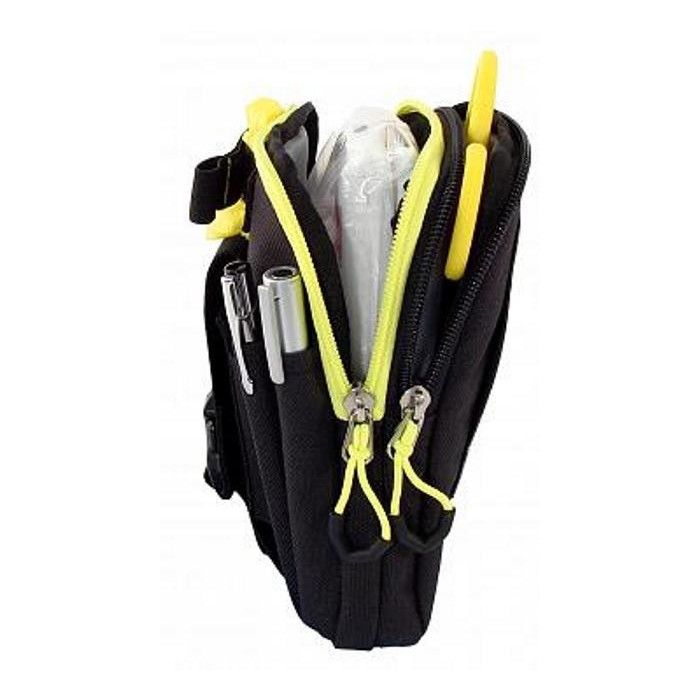 Spacious holster with closable zip compartments for wide range of equipment at operations and sufficient space for personal valuables. Two spacious and padded main compartments provide sufficient space also for larger equipment. Compartments have colour-contrasting zippers for both, easy differentiation and secure closing.