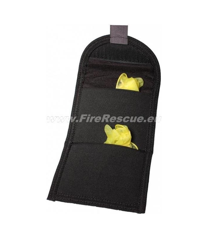 Holster for safe storage of two pairs of infection protection gloves.