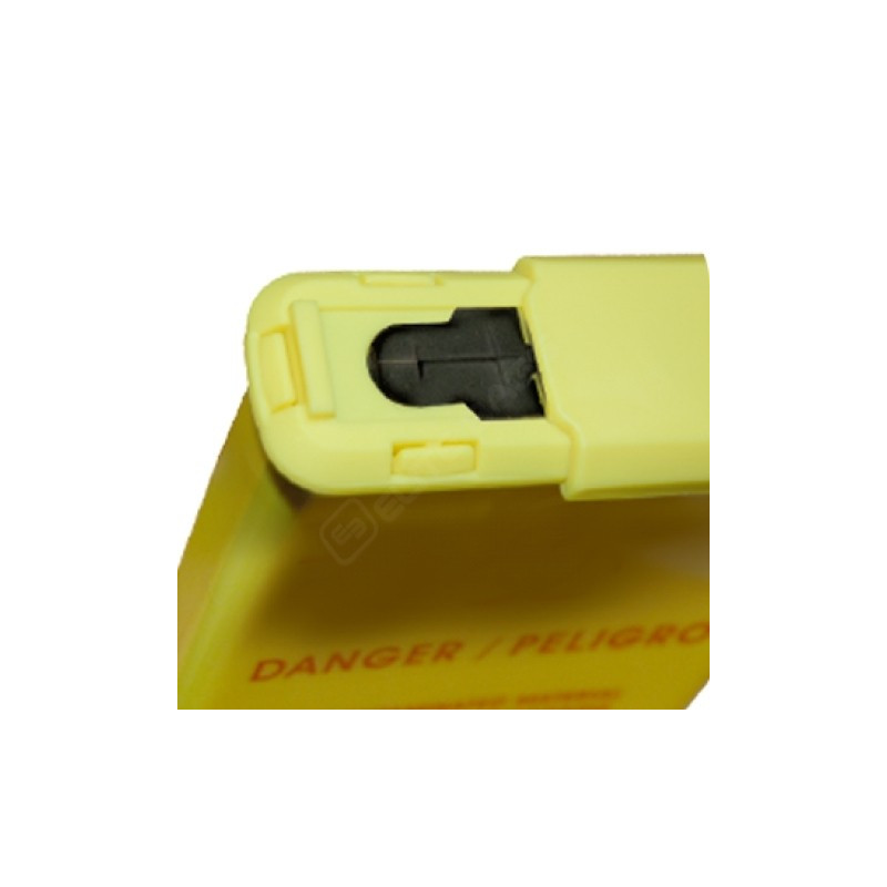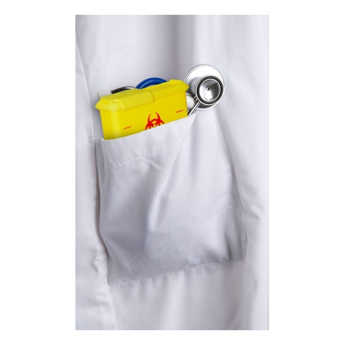 Thanks to its reduced size, it allows the direct inser- tion of needles, catheters, etc. in the container, avoiding them to get out by accident and offering health professionals total security.