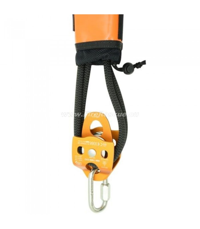 A self-locking device (Futura Miniblock) prevents the load from returning to its previous position. Equipped with a removable mesh cover that increases protection from potential wear due to rubbing, while also reducing the risk of twisting during use.
