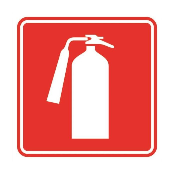 Warning plate FIRE EXTINGUISHER is installed above a fire extinguisher in public places, to indicate the location of the fire extinguisher at a height of 180 cm. It is intended for internal and external use. The plate is 3 mm thick.