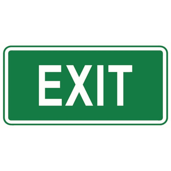 Warning evacuation label EXIT, which is placed above the exit from the building in public spaces, to indicate the exit from the building. It is intended only for internal use.