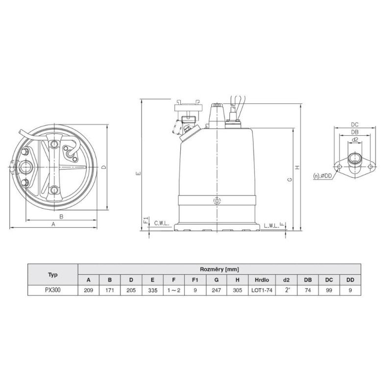 The PX300 submersible pump is unique in its ability to lower the level in the flooded area to the lowest possible level (1-2 mm).