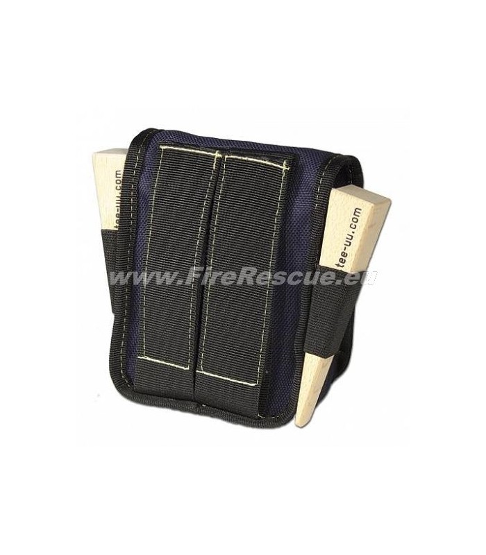 Two exterior elastic loops securely store timber wedges, torch or rescue knife for immediate access. Two large Vario double-loop straps with wide hook-and-loop fasteners allow for firm attachment to the firefighter belt, respiratory protection device or normal belt.