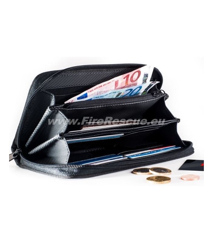 - The sturdy fire hose protects your contents from damage, whether from spilled drinks, perfume, liquid make-up or other dangers lurking in your handbag. A zipper that runs around the outside of the wallet for women keeps all your important things safe.