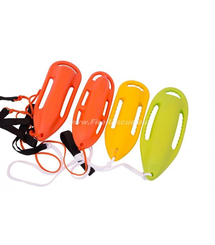 Rescue buoy with spike front, solid plastic with four side handles and two grip on the back. Made of medium density polyethylene, with a smooth surface, it ensures good airworthiness and is hydrodynamic. The strap is made of polypropylene and wear-resistant, and with a floating end, it makes the buoy very suitable for professional rescuers from the water.