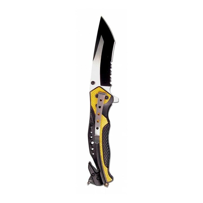 At the end of the knife handle is a glass breaker, which can be easily removed, eg. also leave vehicle windows open. The double blade integrated in the rear handle section allows the rapid cutting through of safety belts in an emergency.