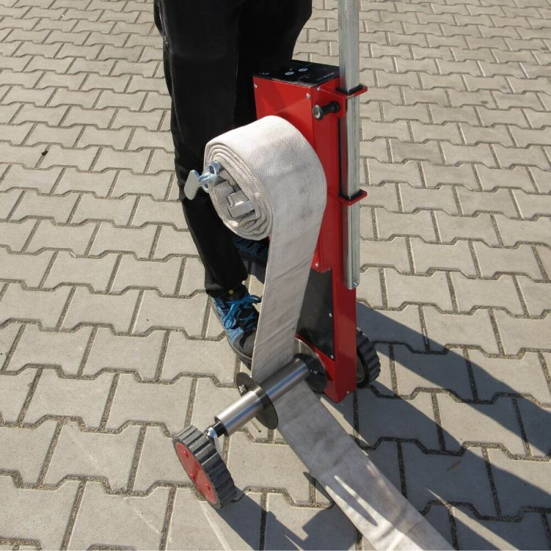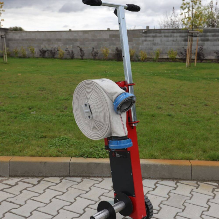 Kompaktna zložljiva naprava na baterije z zmogljivim vgrajenim električnim motorjem skrajša čas, potreben za povijanje odvitih gasilskih cevi po akciji ali usposabljanju. Naprava se lahko uporablja tudi za praznjenje napolnjenih gasilskih cevi ali za kontrolirano odvijanje že navite cevi.