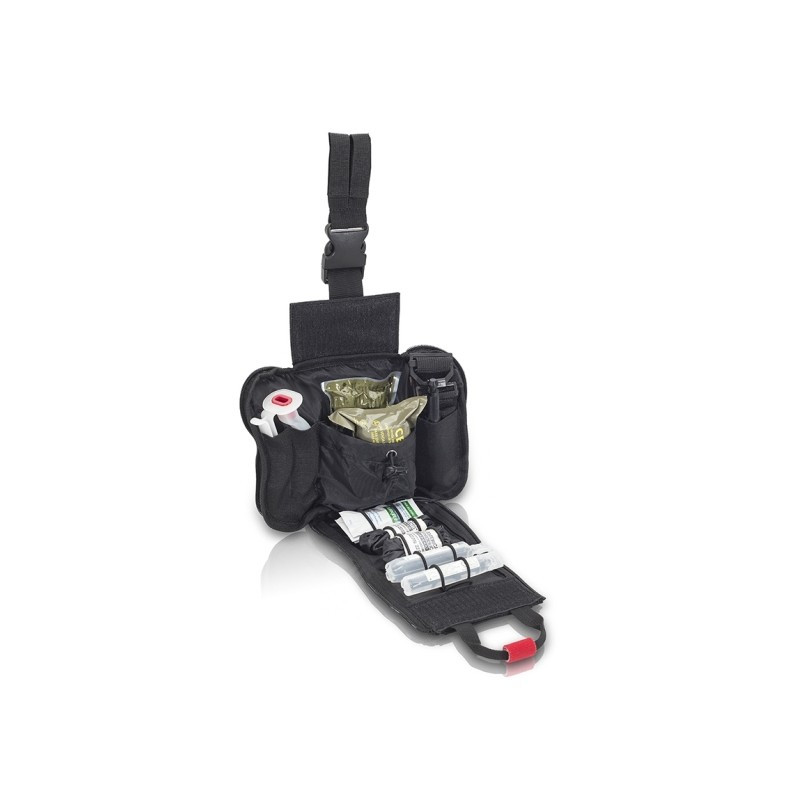 Torbica prve pomoči za namestitev na nogo, srednje velikosti (2-3 osebe). Njen dvojni sistem odpiranja omogoča hiter in popoln dostop do notranjosti. Njen položaj je mogoče nastavljati, nedrsni trakovi ustavijo torbico pred premikanjem na nogi.