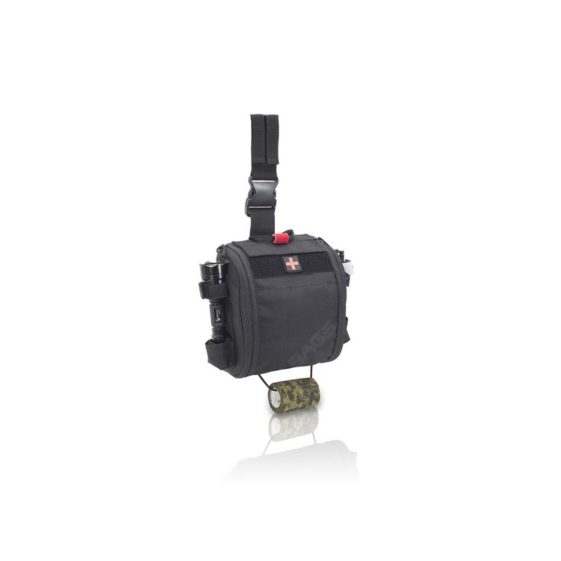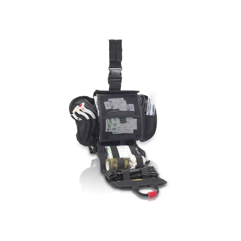 Komplet prve pomoči za reševalce. Njena velika velikost in postavitev omogoča prevoz in organizacijo materiala v samopomoči in v sili. Njen dvojni položaj za pritrjevanje (pas / noga) bo torbica enostavna za prenašanje, poleg tega je pritrditi mogoče regulirati, in ne drsni trakovi ustavijo torbico pred premikanjem na nogi.