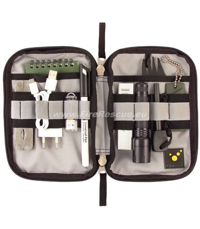 Elastične zanke različnih velikosti, ki so razporejene v dveh ravneh, omogočajo držanje opreme, kot so peresa, večnamenska orodja, svetilko ali oprema za prvo pomoč.