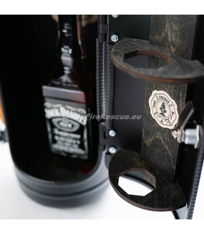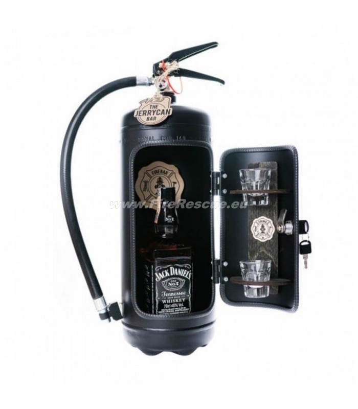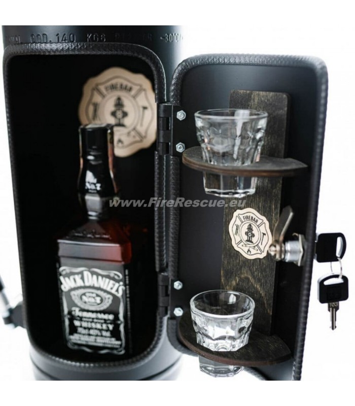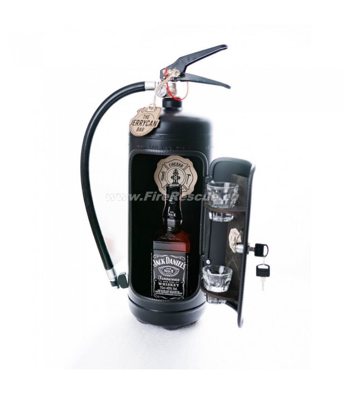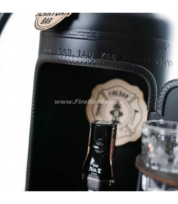 Mini bar je ročno izdelan iz 6-litrske jeklene jeklenke, zasnovane za pravi gasilni aparat.