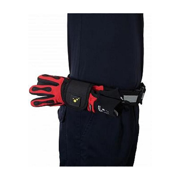 Praktični etui za varno pritrditev rokavic na pas. Trajna pritrditev na zanko zagotavlja trdno držo rokavic, ne glede na velikost rokavic.