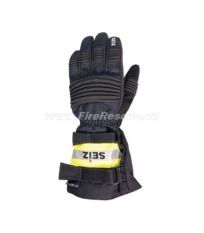 - Hrbtna stran: NOMEX® s posebej razvitim SEIZ® toplotnim absorberjem preko členkov. Odsevne pike za dodatno varnost. Elastični trak na zapestju.