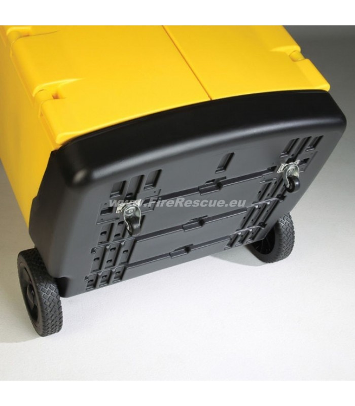 - Velik mobilni voziček z vrati, ki se odpirajo navzven, in pokrovom, ki se odpira, omogoča takojšen dostop do univerzalne opreme za ukrepanje ob razlitju v tem kompletu z visoko vidljivostjo.