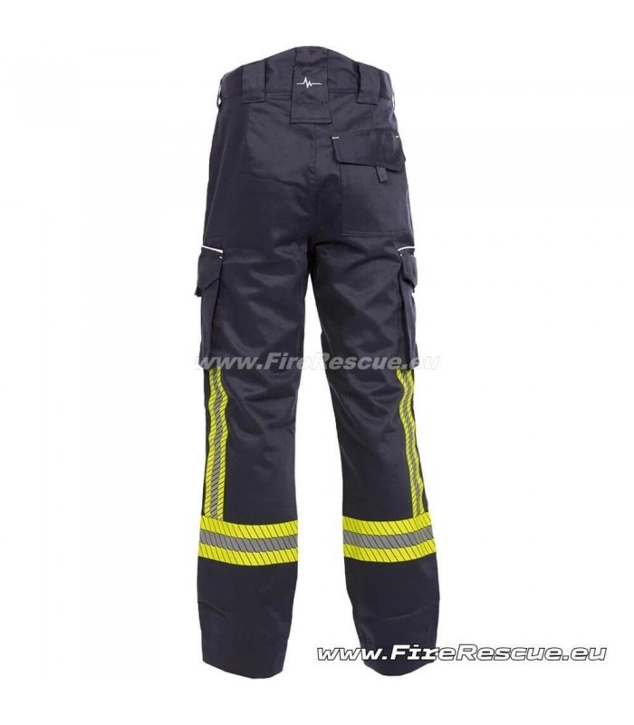 Gasilska oblačila RESCUEWEAR so dinamična oblačila z modernimi in dobro vidnimi segmentiranimi odsevnimi črtami v skladu s standardom EN ISO 11612. Zahvaljujoč našemu dinamičnemu kroju hlač in jakne lahko pričakujete maksimalno udobje in svobodo gibanja pri vsaki aktivnosti.