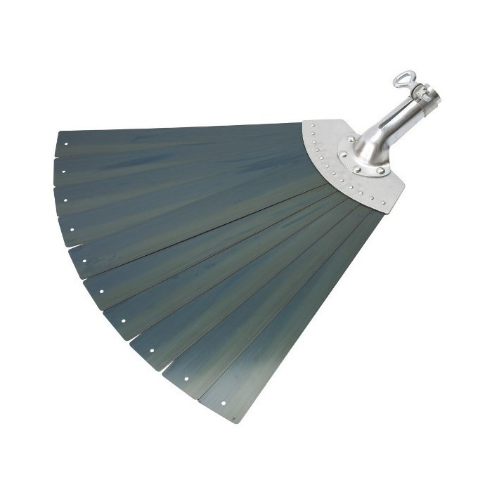 Preverjen model z 10 vzmetnimi jeklenimi listi. Glava je izdelana iz pocinkane jeklene pločevine. Pritrditev ročaja, ki je priložen ločeno, je s hitro sprostitvijo.