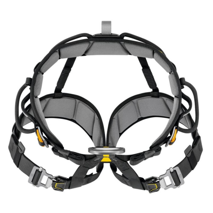 Kovinska ventralna pritrdilna točka porazdeli obremenitev med pasom in zankami nog.