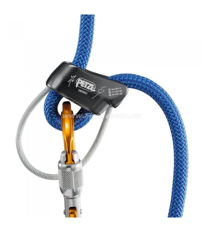 Priprava za varovanje- za spust po enojni ali dvojni vrvi. VERSO je najlažja Petzlova priklopna naprava. Sprejema večino premerov vrvi: enojne (8,5 mm do 11 mm), polovice (7,1 mm do 9,2 mm) in dvojne (6,9 mm do 9,2 mm). Enostavna za uporabo, omogoča plezanje in varovanje. Posebna zasnova vrvnih kanalov olajša gladko drsenje vrvi in zmanjša obrabo.