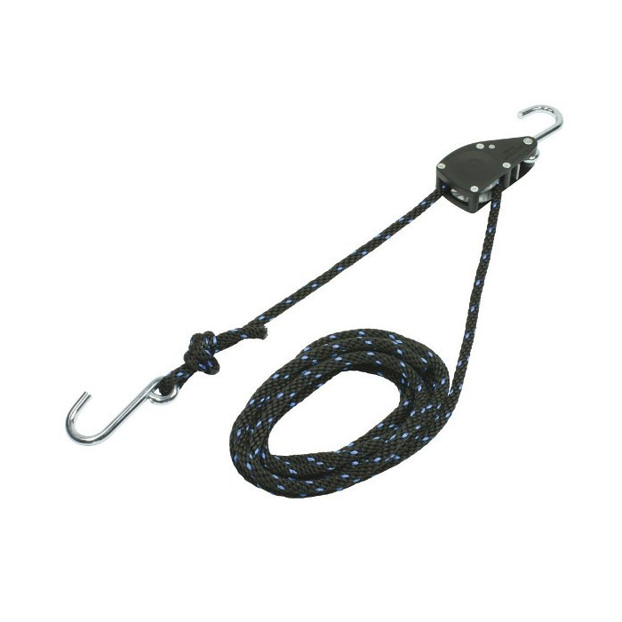 Za varno pritrditev sta dve kljuki preprosto obešeni in privita prosti konec vrvi. Pri tej vrsti pritrjevanja so izključeni raztezki, razpoke ali rahljanje. Obremenitev ostane varno privezana, saj se vrv drži vsakič, ko jo povlečete in jo sprostite šele, ko se aktivira praktična ročica.