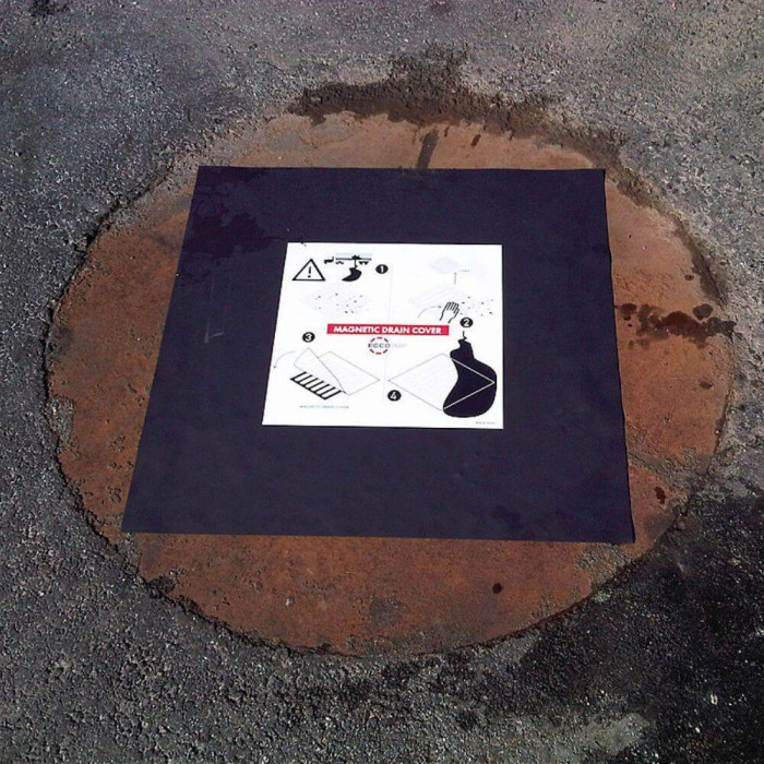 Preden namestite magnetni pokrov odtoka na odtok, se prepričajte, da zgornja površina odtoka ni umazana. Zelo učinkovit je pri nanašanju na ravne in gladke površine (na industrijskih objektih, cestah ipd.). Njegov oprijem na tla je okrepljen s hidrostatičnim tlakom ujete tekočine nad njim.