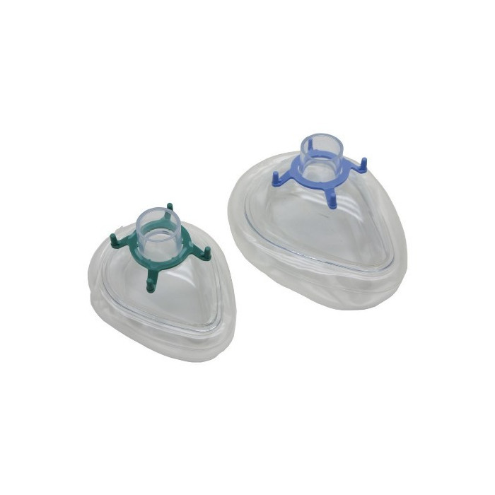 Respiracijska maska je izdelana iz plastike, ki ohranja masko v obliki. Z zrakom napolnjena blazinica tesni kontaktno površino na obraz pacienta. Z ventilom za polnjenje obrazne zračne blazine.