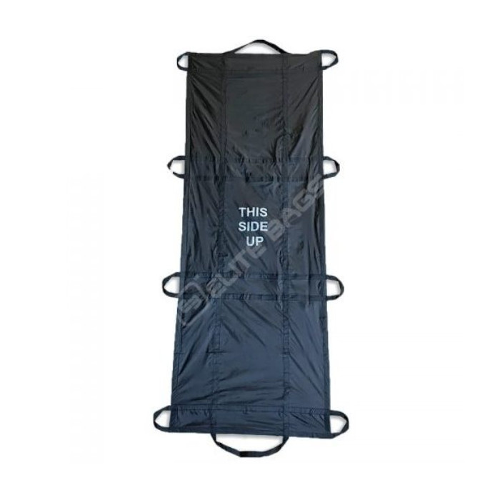 To zložljivo ležišče, izdelano iz materiala brez lateksa, ima velika držala za roke tako pri glavi kot pri nogah, kar omogoča enostavno ravnanje s pacientom.