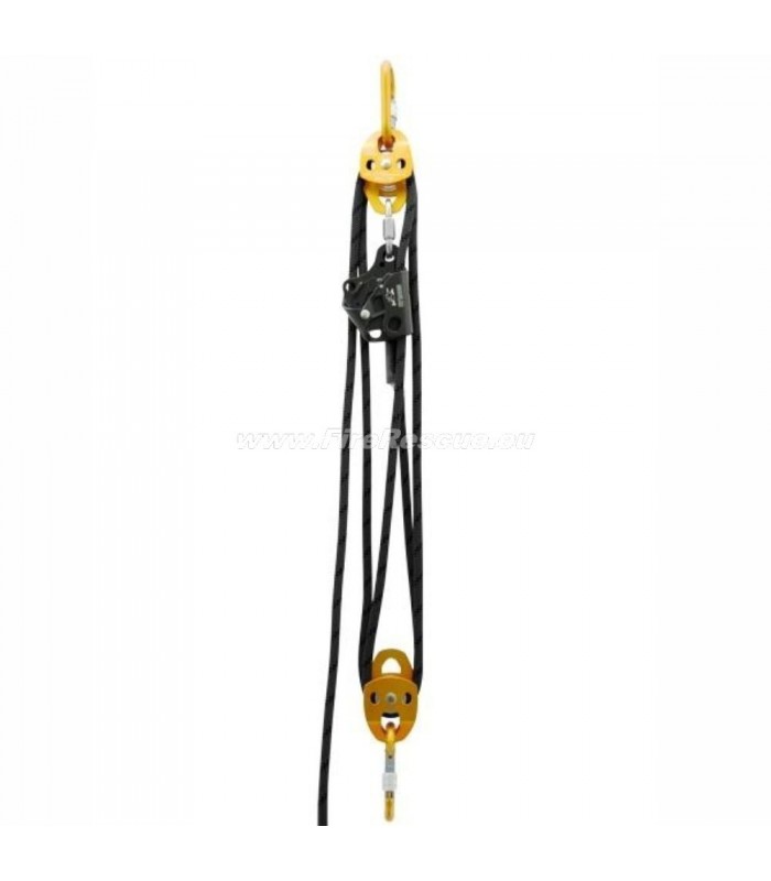 Vnaprej sestavljen reševalni sistem, ki omogoča dvig bremena s silo, ki je enaka 1/4 bremena. Če se uporablja v obrnjenem položaju (vlečenje od spodaj navzgor), se potrebna sila zmanjša na 1/5. Samoblokirna naprava preprečuje vrnitev tovora v prejšnji položaj.