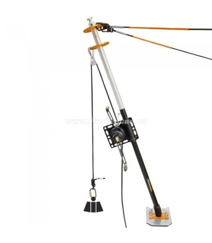 Reševalni komplet, sestavljen iz vitla*, aluminijaste plošče z več pritrdilnimi točkami in mobilne čeljusti iz nerjavečega jekla, ki omogoča montažo sistema na najpogostejše cevne konstrukcije premera od 48 do 50 mm (odri in cevi), na 4D stebre, kot tudi na celotno serijo stojal Kong.