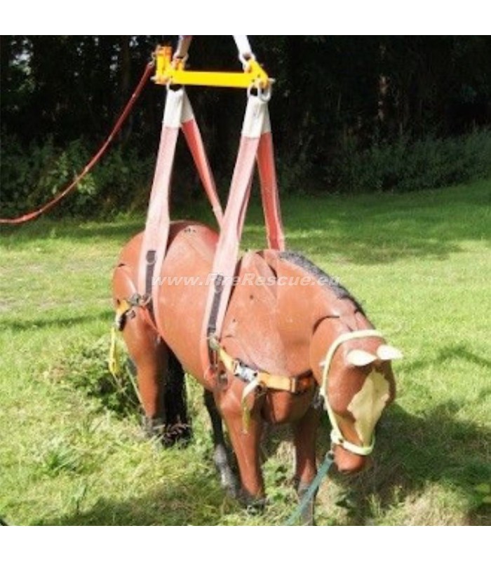 Dvižni trakovi so opremljeni s kovinskimi očesci, v katere so obešeni varnostni pasovi, ki preprečujejo, da bi se žival prevrnila nazaj ali naprej. Enostavno rokovanje omogoča hitro namestitev trakov v nujnih primerih. S pomočjo velikih vrvnih zank so dvižni pasovi obešeni na dvigalo, da dvignejo žival.