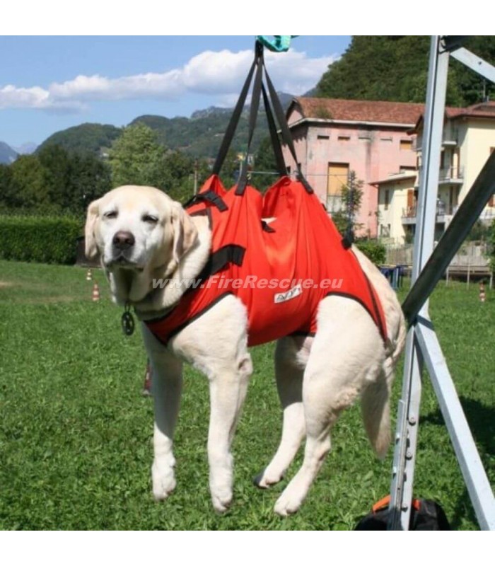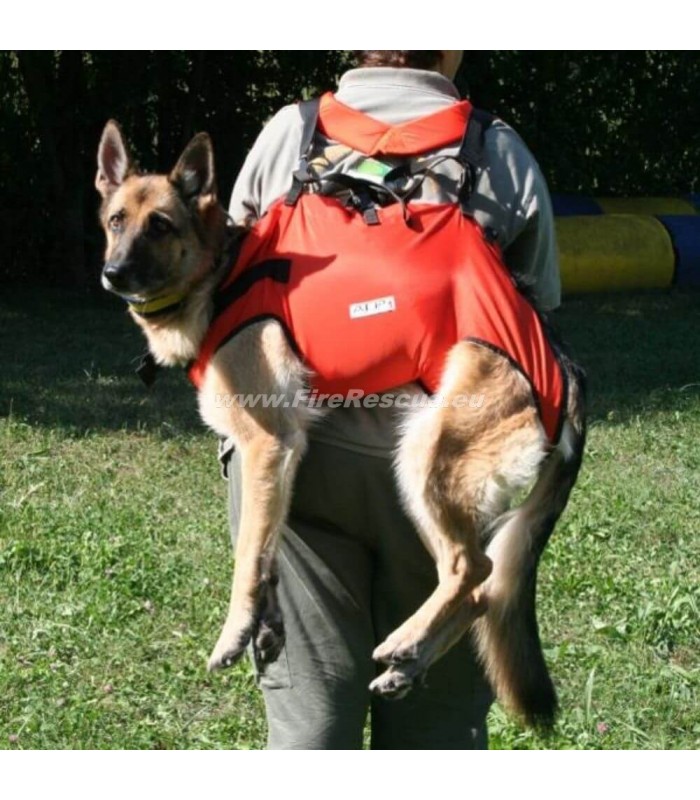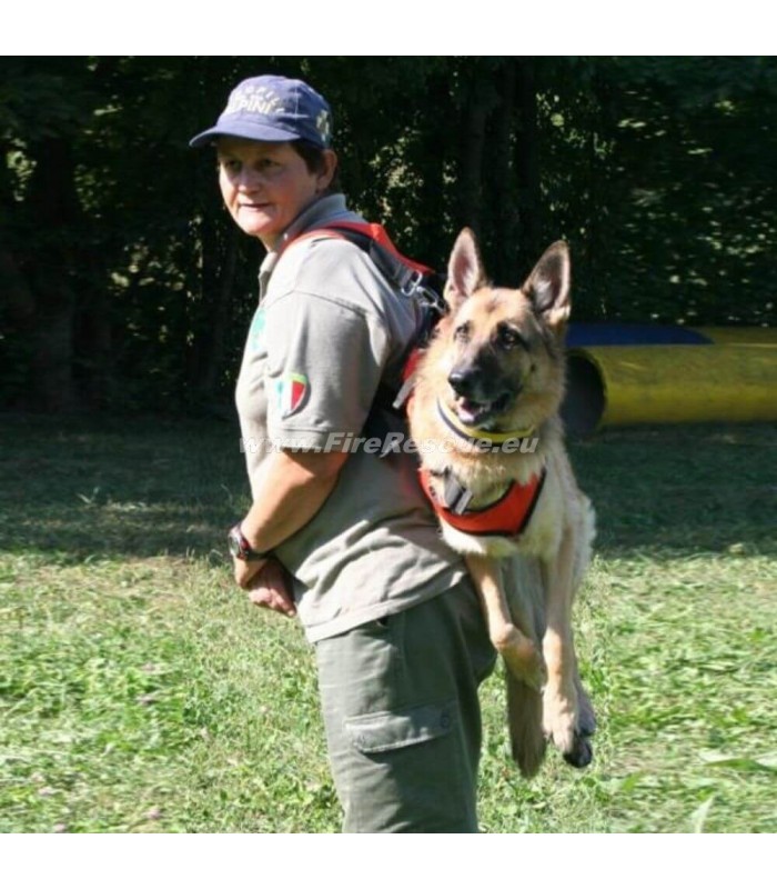Posebej razvit pas za reševalne pse v akcijah pomoči in za reševanje poškodovanih psov. Priložen odstranljiv naramni pas za nošenje psa na hrbtu.