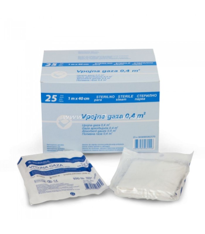 Vpojna gaza je sterilizirana bombažna tkanina, posamično pakirana in zelo vpojna. Uporablja se za pokrivanje ran z obilnim izločkom.