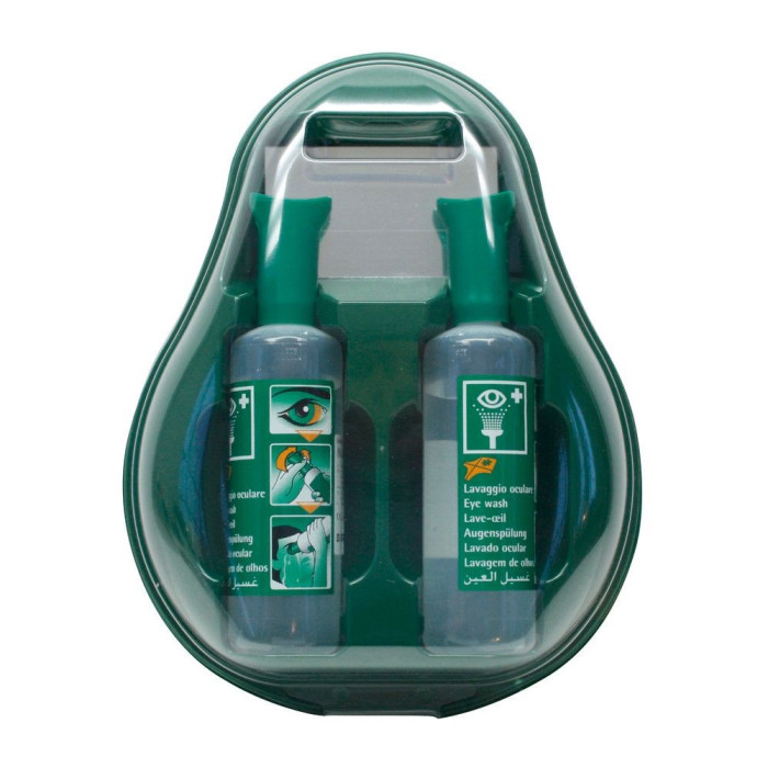 Steklenička s sterilno raztopino natrijevega klorida (0,9%). Opremljena z ergonomsko oblikovanim očescem in pokrovčkom za prah. Steklenička je primerna za polnjenje postaje za izpiranje oči in za enkratno uporabo.