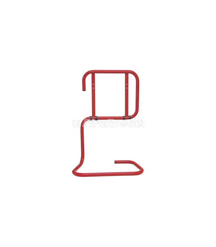 Stojalo za dva gasilna aparata izdelan iz nerjavnega jekla in rdeče pobarvano.