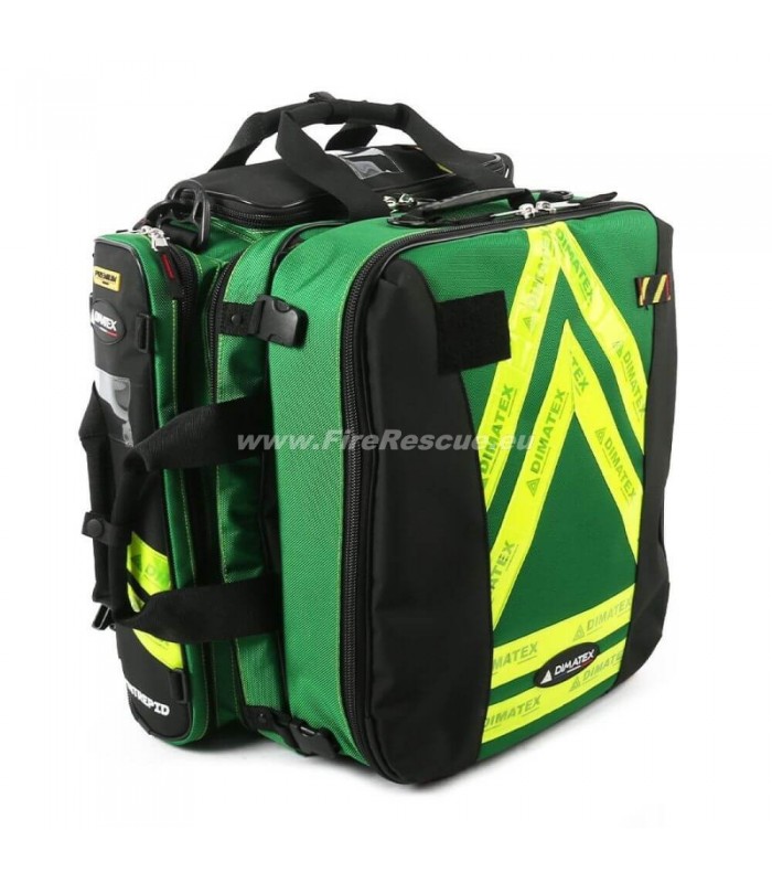 Reševalni nahrbtnik DIMATEX INTERPID je sestavljen iz dveh različnih reševalnih nahrbtnikov URGENCY in PATROL XL, kar mu omogoča 72 litrov prostora za reševalno opremo. Hitro odpenjanje nam omogoča prenos samo enega nahrbtnika oz samo najbolj nujne reševalne opreme.