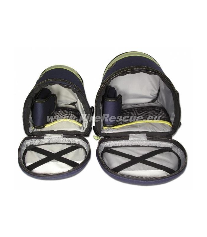 Torba z veliko kapaciteto za celo obrazno masko: RESPI nadomešča nepraktično plastično torbico. Zaradi popolnoma podložene torbe je maska popolnoma zaščitena. RESPI je opremljena z žepom za shranjevanje zasebnih očal med uporabo maske. V pokrovu je vgrajen notranji žep za dragocenosti, nosilec na vrhu pokrova.