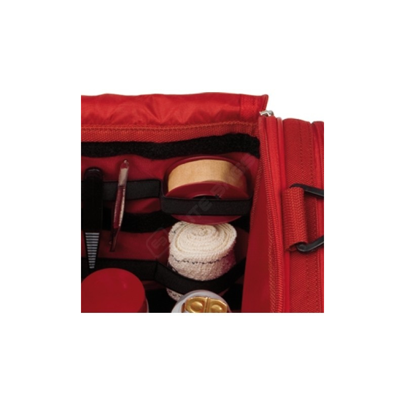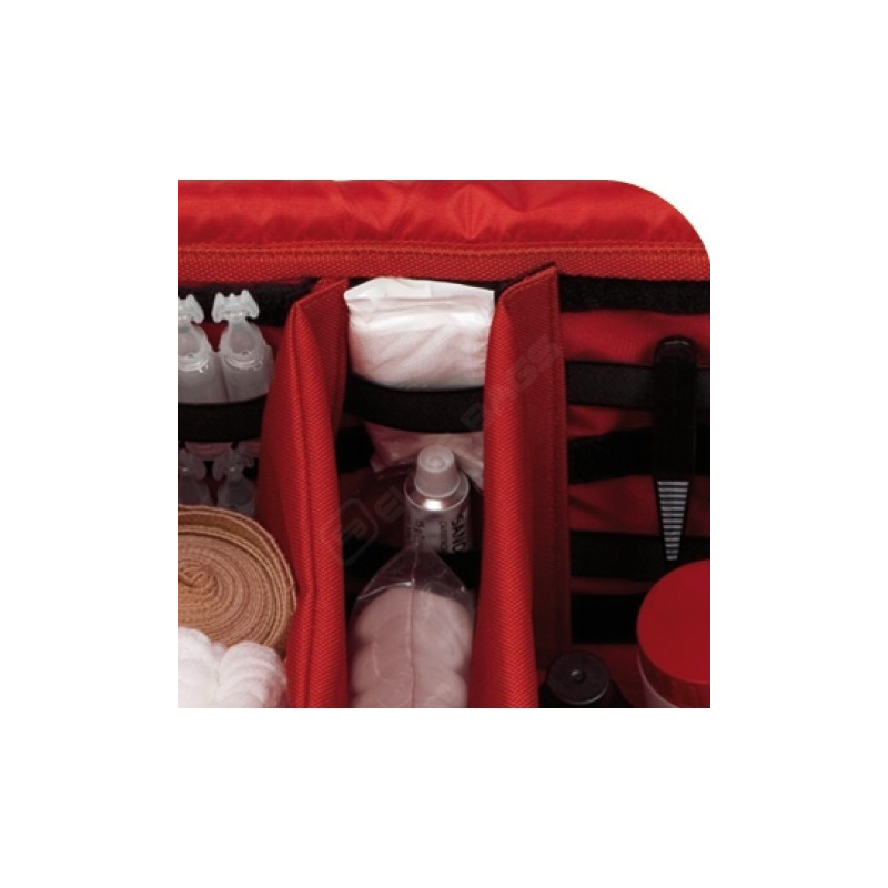 Torba za prvo pomoč. Zaradi svoje zasnove in visoke zmogljivosti, lahko shranjuje vso potrebno opremo za uporabo prve pomoči na različnih krajih in situacijah: kot so šole, športni klubi ali izlete.