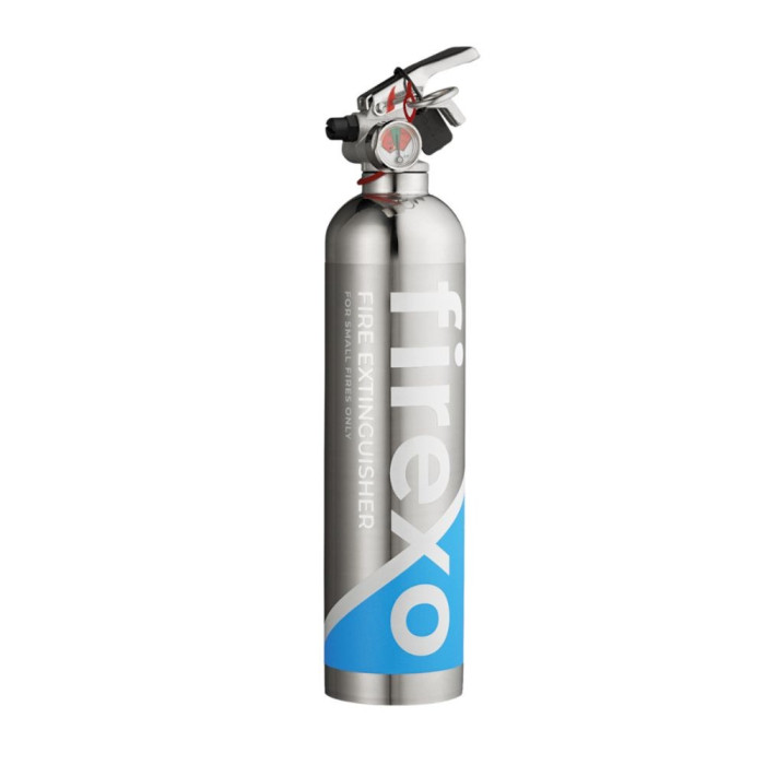 Mali gasilni aparat Firexo 500 ml iz nerjavečega jekla za gašenje vseh vrst požarov (A, B, C, D, E, F in Li-ion baterije).