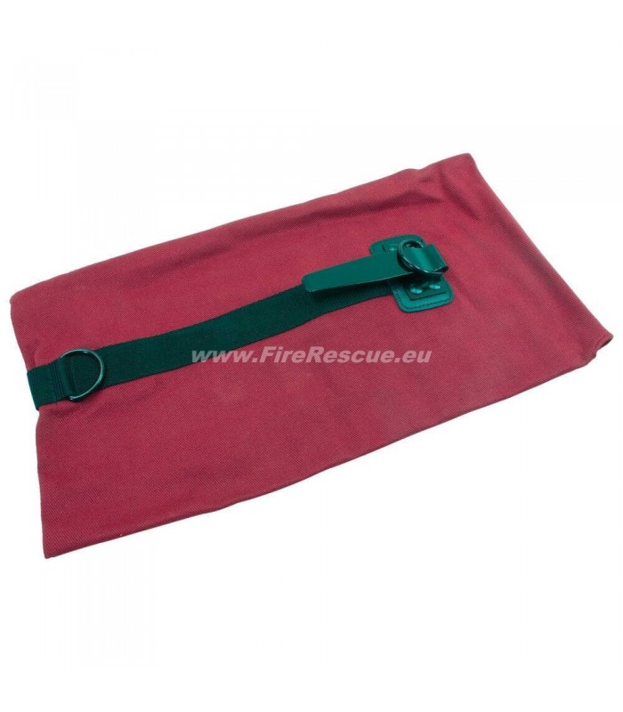 Rjavo impregnirana jadralna tkanina v skladu z novim DIN 14921, za reševalne vrvi F20 in F30, z zavihkom in zaponko ter obročki za reševalno vrv in dodatnim karabinom.
